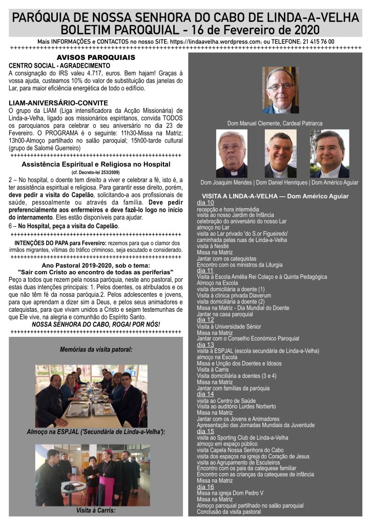Boletim paroquial, Domingo, 16 de Fevereiro.