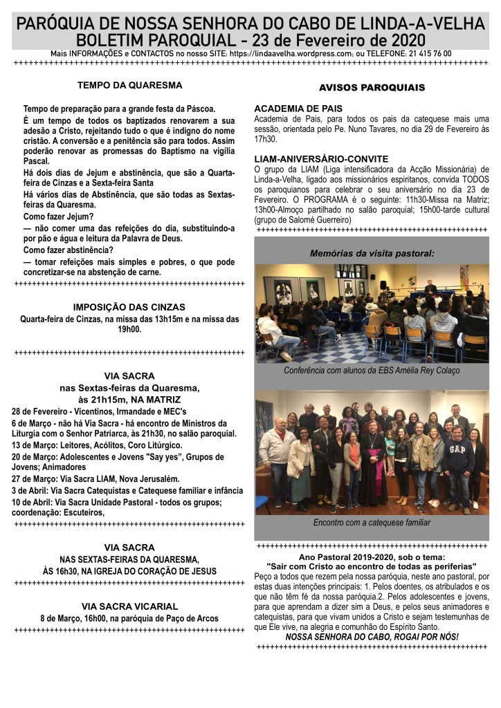 NÃO HÁ MISSAS. NÃO HÁ ACTIVIDADES.