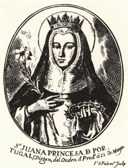 No dia 12 de Maio comemora se a morte da Beata Joana de Portugal. Filha de D. Afonso V, rei de Portugal, e de sua esposa, a rainha D. Isabel, a Princesa D. Joana nasceu na cidade de Lisboa, em 6 de Fevereiro de 1452; era uma época em que no País se vivia a epopeia dos Descobrimentos. Órfã de mãe aos quatro anos de idade, procurou desde menina praticar as mais edificantes virtudes humanas e cristãs, tanto no desprendimento das grandezas da Corte e das facilidades do mundo, como na profunda piedade e vida interior, na franca devoção à paixão de Cristo e na caridade em favor dos pobres e necessitados. Para manifestar tal gênero de sentir e de viver, escolheu por distintivo pessoal a coroa de espinhos.