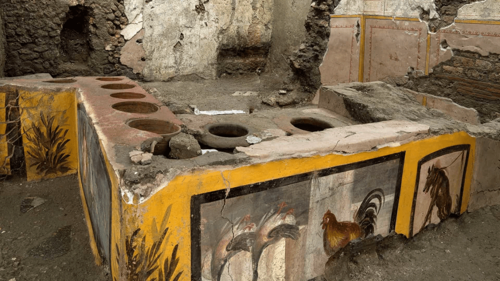 Novas escavações arqueológicas revelaram um restaurante “fast food” intacto! Esta nova relevação irá permitir-nos saber mais sobre a gastronomia e os pratos populares naquele local que ficou soterrado após uma erupção vulcânica.