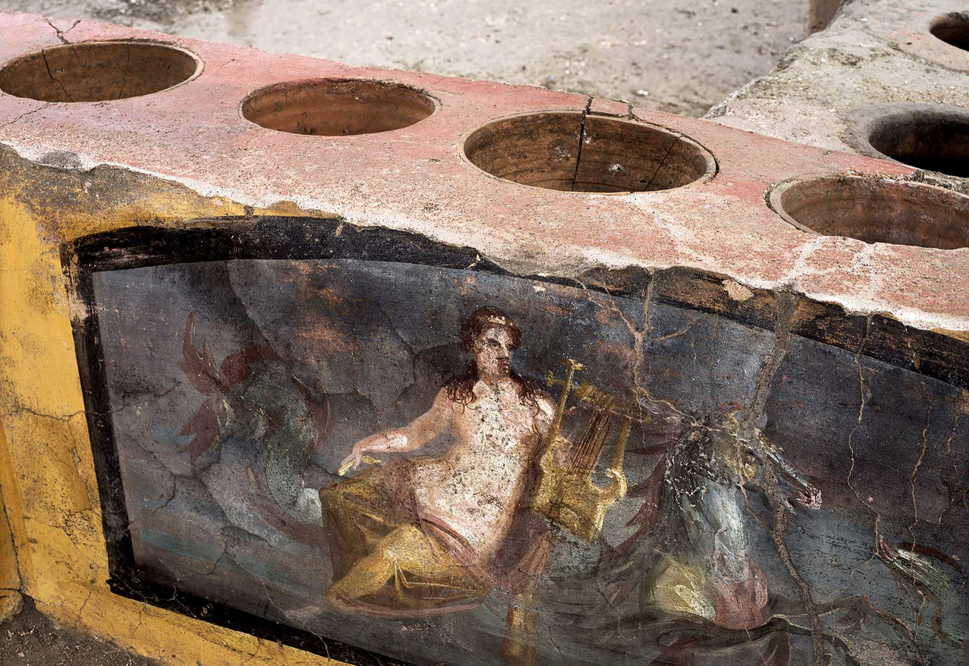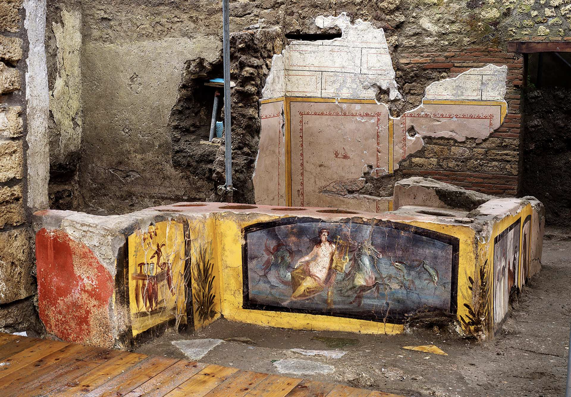 Um segmento do balcão de ‘fast-food’ foi parcialmente desenterrado em 2019, durante os trabalhos para apoiar as ruínas de Pompeia, várias vezes em risco de desabar.