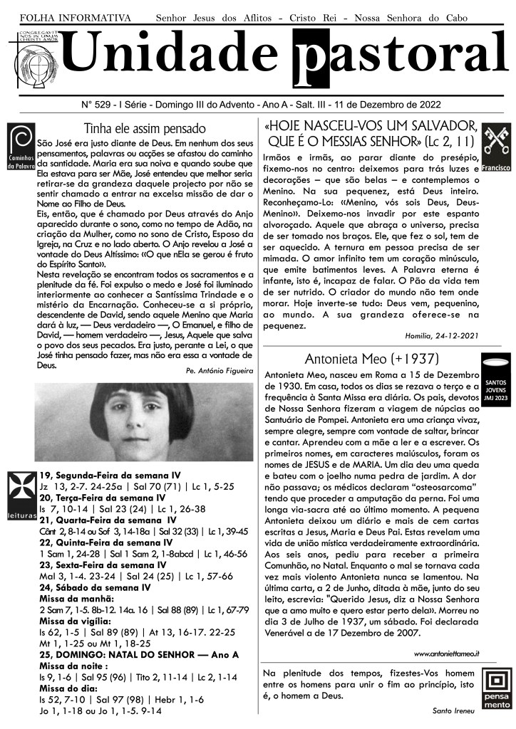 Receberemos a Luz da Paz de Belém aqui na paróquia, na próxima terça-feira, dia 20, às 21h30. Convidamos todos a vir até à igreja, trazendo as vossas lanternas, para levarem esta Luz da paz para as vosas famílias. Convidamos também a que partilhem esta Luz com so vossos vizinhos do prédio ou da rua, num testemunho de fraternidade e paz.