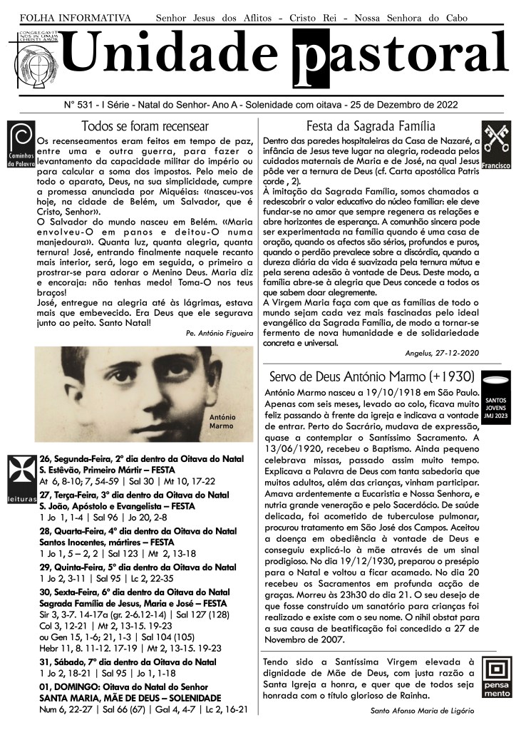 dia 1 de Janeiro, Domingo – Santa Maria Mãe de Deus