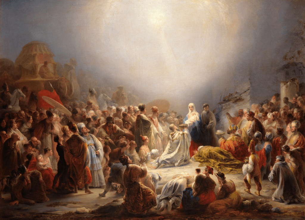 O Natal celebra o nascimento do Salvador; a Epifania manifesta o Verbo de Deus em Pessoa, eternamente gerado no seio do Pai. Na noite de Natal os Anjos cantam; na vinda dos Magos, o mundo adora. A ternura dum Menino revela-nos a face de Deus. Os Magos adoram o Verbo feito carne, a força feita fraqueza, o Senhor de majestade na realidade de um homem. O mistério da Epifania também proclama aos homens a realeza de Jesus Cristo. Os braços de Maria são o seu trono real. Aquele que nasceu Rei quer tributo de vassalagem, glória, honra e louvor. Ajoelha e adora.