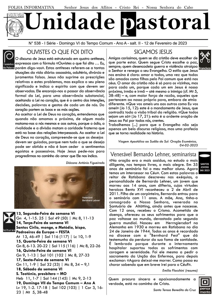 O Curso “A Eucaristia faz a Igreja” terá a segunda sessão antecipada para dia 12, Domingo, às 21h15, na igreja paroquial.