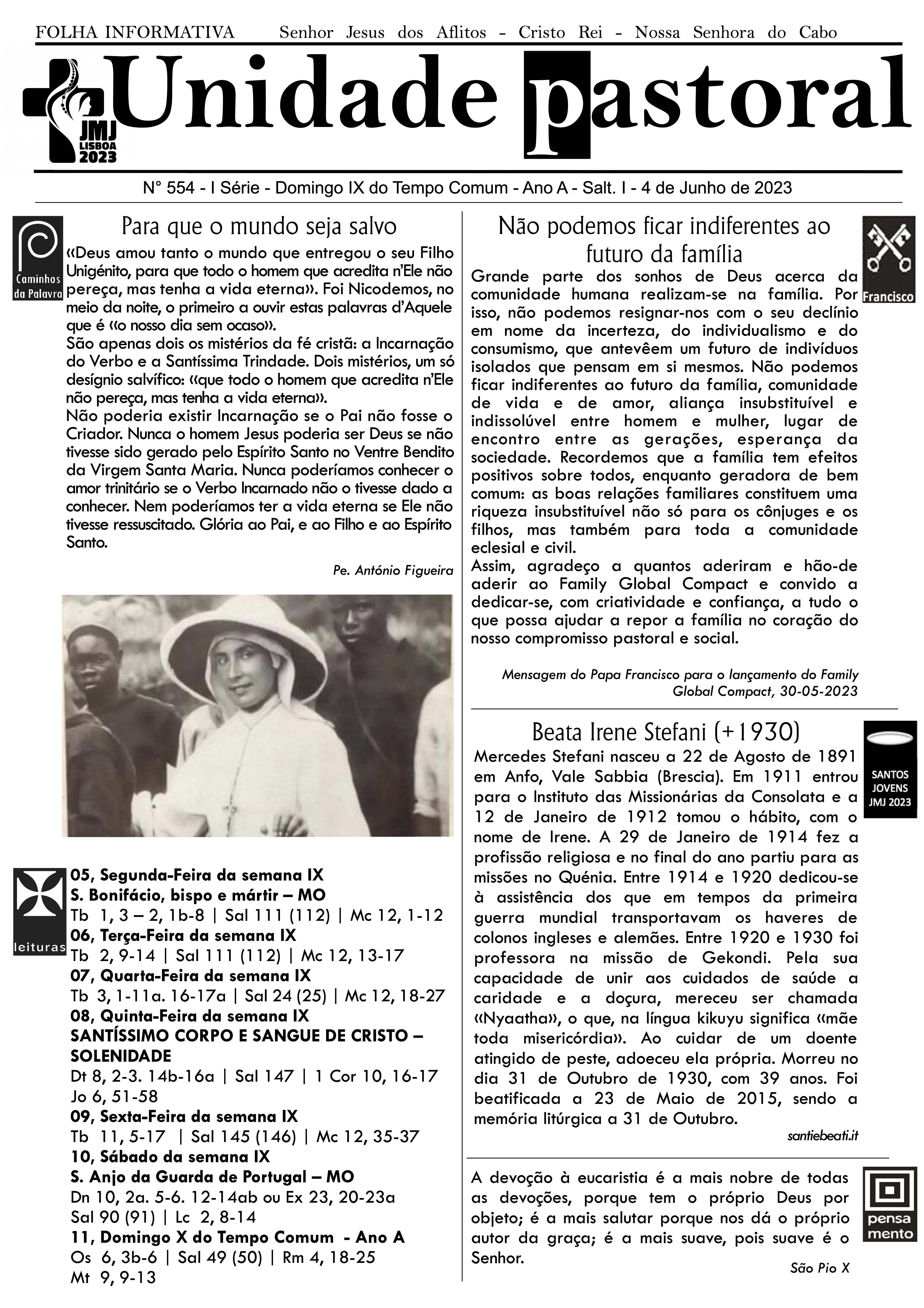 À tarde iremos todos à Sé Patriarcal, para a procissão do Santíssimo Sacramento, com o Senhor Cardeal Patriarca, com o seguinte horário: