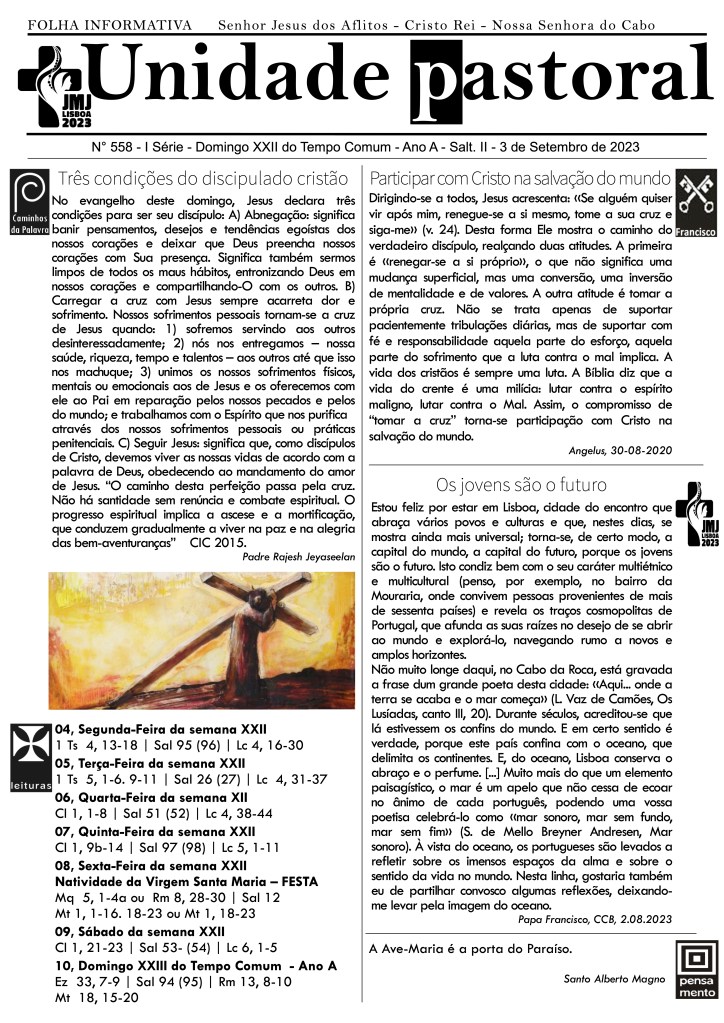 Dia 8, festa da Natividade da Virgem Maria – Missa às 10h45 com os utentes do Lar e Centro de Dia, na igreja paroquial.