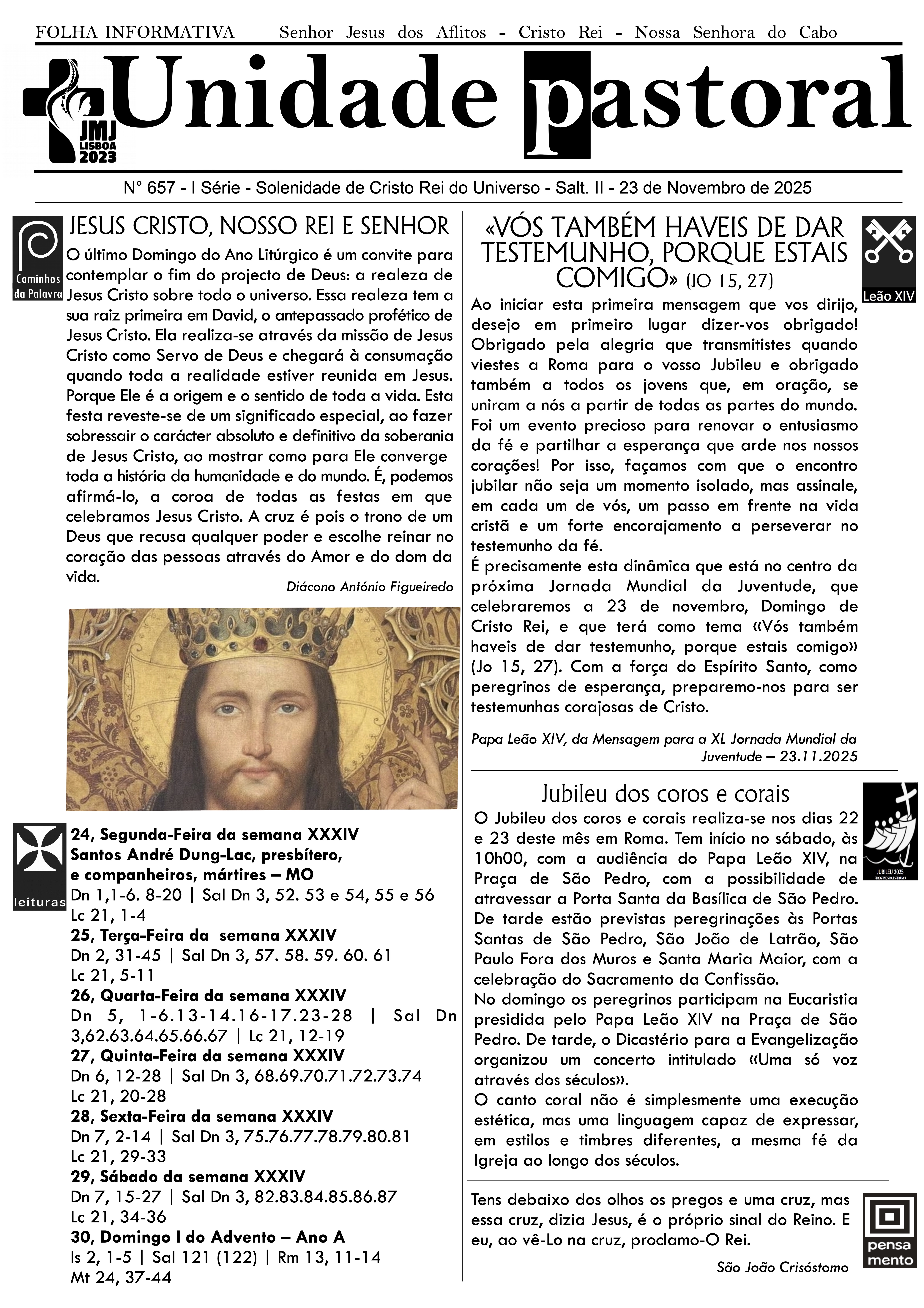 Para quem se inscreveu na pererinação, que será de 12 a 14 de dezembro, há reunião com a agência de viagens. Será nesta quinta-feira, dia 27, às 21h30m, na Sala da Ressurreição.