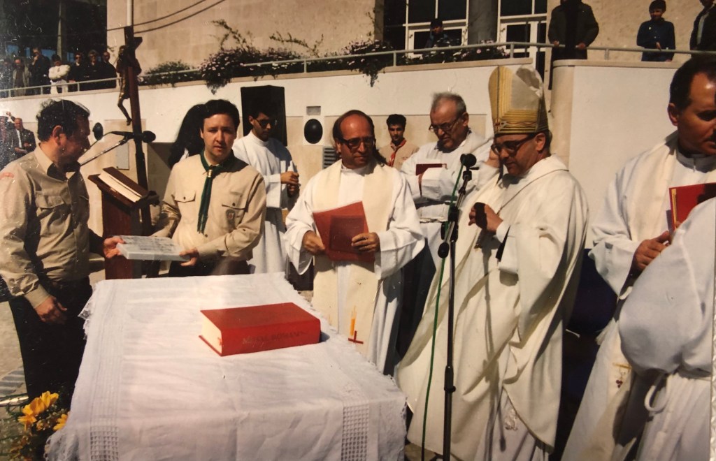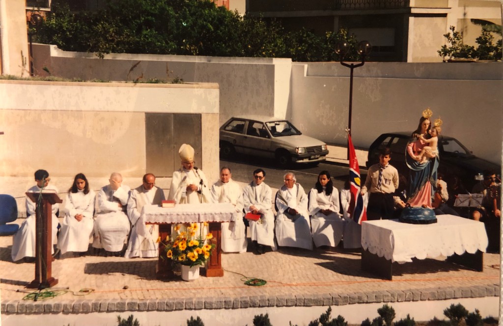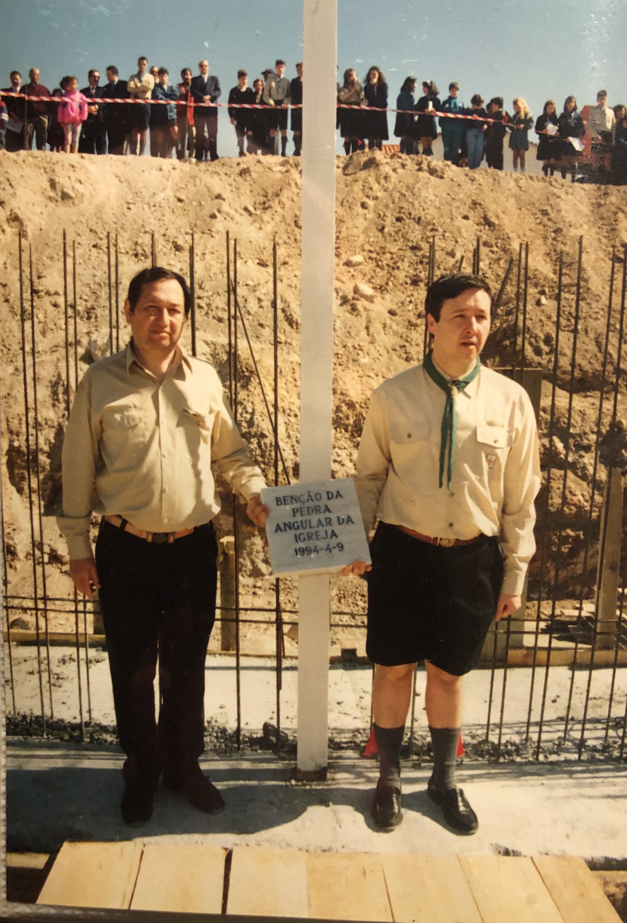 a 9 de Abril de 1994. Podemos identificar nas fotos a celebração da Eucaristia, presidida por Dom Albino Cleto, Bispo auxiliar do Patriarcado de Lisboa, concelebrando o Padre Manuel Martins e vários sacerdotes, com a presença das entidades oficiais e de inúmeros fiéis. Identificamos também a benção e a colocação da pedra angular no alicerce da igreja.